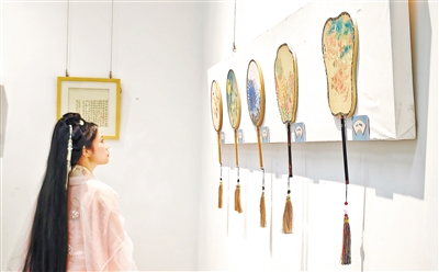 3月7日,“芳华扇舞”工笔扇面与小幅书法精品展在湛江市藏真书画院开幕。 本报记者刘冀城摄