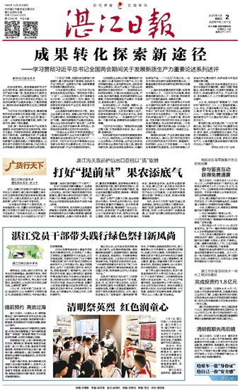 湛江日报讯 (记者文秋华 通讯员黄燕娣)4月1日,记者从市气象局获悉,清明假期我市先雨后晴,4日受冷空气和切变线影响,有雷阵雨、局部暴雨,部分地区伴有短时强降水、8~10级短时大风等强对流天气,不排除个别乡镇(街道)出现冰雹的可能性;5日至6日转晴朗干燥为主,午后部分地区有短时雷阵雨。