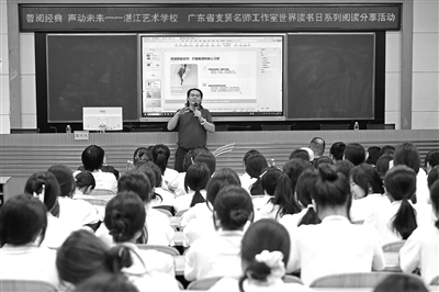 湛江日报讯 (记者殷翊展 通讯员知然)为迎接第31个世界读书日的到来,4月1日下午,在共青团湛江市委的指导下,湛江艺术学校、广东省支贤名师工作室联合广东东元豪科技有限公司、中共广东技舟能科技有限公司支部在湛江艺术学校举办“智阅经典·声动未来”阅读分享会(如图,湛江日报记者殷翊展 摄)。