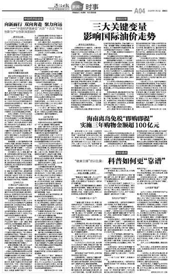 近期国际油价大幅波动。伦敦洲际交易所布伦特原油期货价格3月31日实现超过60%的创纪录月度涨幅,4月1日又显著下跌。一些市场分析人士认为,国际油价未来走势将取决于运输通道是否“梗阻”、石油储备释放和美以伊战事持续时间三大关键变量。当前中东战事持续升级、影响外溢,石油供应缺口难以填补甚至可能扩大,油价上行风险仍然较高。