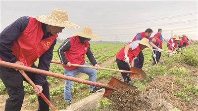 启动仪式结束后,各清淤队伍立即奔赴作业点位。尽管天空中飘着细雨,但大家的清淤热情丝毫没有减退。弯腰锄草、挥锹铲泥、合力转运……大家分工协作、干劲十足,不少人直接站在沟渠之中,泥水沾湿衣裤也全然不顾。“志愿红”身影在春雨中忙碌穿梭,与沟渠另一侧的盎然绿意相映成趣,勾勒出实干兴水、干群同心的动人画卷。