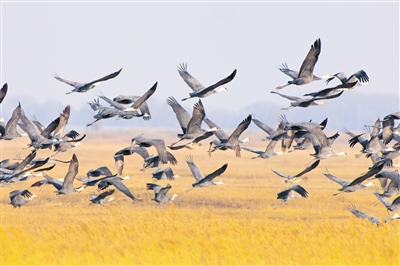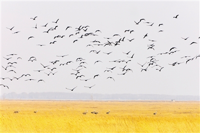 3月28日,黑龙江省富锦国家湿地公园的候鸟。 曲玉宝摄
