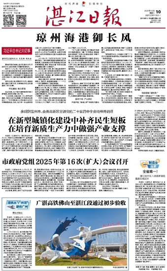 调研中,余钢强调,学习贯彻党的二十届四中全会和省委十三届七次全会精神,关键要落到具体行动上、体现在发展成效上。雷州市、奋勇高新区要立足自身资源禀赋和产业基础,在新型城镇化建设中补齐民生短板,在培育新质生产力中做强产业支撑,在区域协同发展中凝聚攻坚合力,以实实在在的工作成效推动高质量发展取得新突破。