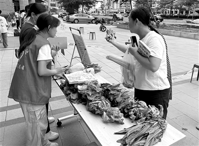 本次活动由海湾社区新时代文明实践站联合中建三局集团有限公司湛江分公司、开乐派幸福驿站共同举办。居民只需带来1本内容健康、无破损的闲置书籍,即可兑换一份新鲜时令蔬菜(如图,湛江日报记者殷翊展 摄)。